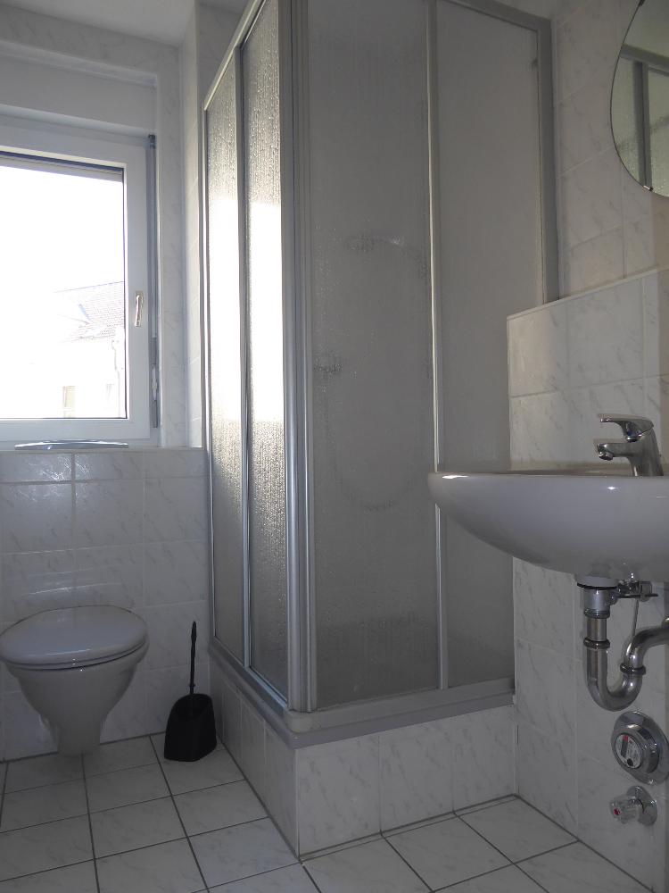 Ihr Bad ist mit einer mit Dusche ausgestattet, raumhoch gefliest und hat ein Fenster. Die kleine Küche ist mit einer Singleküche ausgestattet. Direkt an der Küche befindet sich eine kleine, praktische Abstellkammer. Im Wohnraum und im Flur ist Laminat verlegt. Das Bad ist gefliest und in der Küche liegt PVC- Belag.