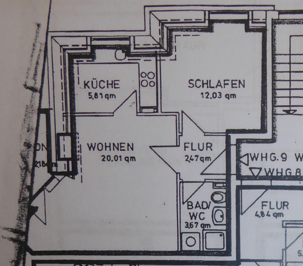 Die Einheit befindet sich im 2. Obergeschoss, dies ist hier das 1. Dachgeschoss. Somit hat die Wohnung zum Teil Dachschrägen.
